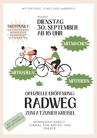 "Wendessen radelt - einmal Kreisel und zurück!" heißt das Motto der Veranstaltung, die auf einer Fläche direkt am Radweg am Ortsausgang in Richtung Atzum gegenüber der Kleingartenanlage stattfindet. Nach der Eröffnung durch Vertreter des Landkreises, der Stadt und der Baufirma kann sich jeder von der Qualität des Weges und der tollen Aussicht überzeugen und einmal selbst rauf und runter radeln.